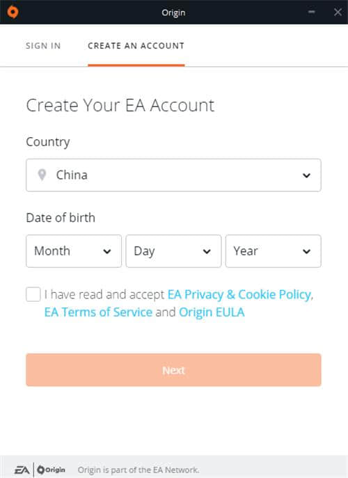 1.打开软件后,单击[创建帐户]选项注册原始平台。您需要选择国家和中国。选择年月日后,勾选“我已阅读并接受”,最后点击【下一步】按钮。