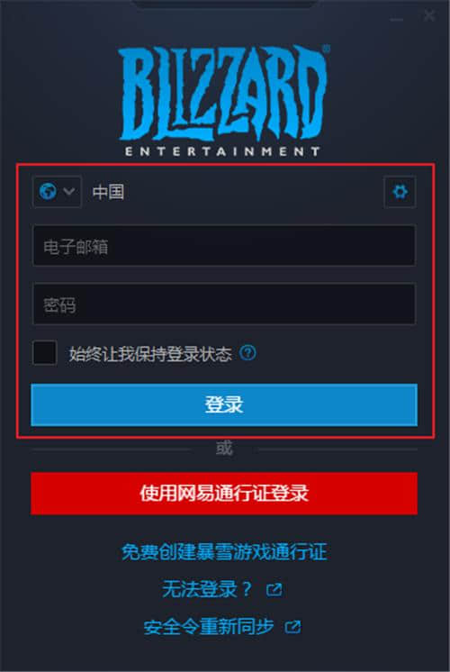 4.暴雪战网客户端软件安装完成后,我们可以关闭安装界面,打开软件使用。如下图所示,软件需要登录密码才能使用。