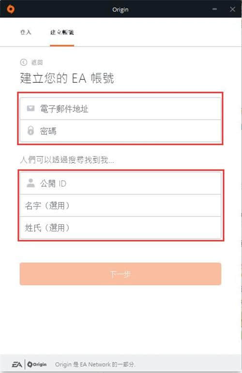 1.打开已安装的原产地平台,将登录界面切换到“建立”界面,在下方依次输入地区和出生日期,阅读相关协议。阅读完毕,点击前面的“我已经阅读并接受”,然后点击“下一步”。