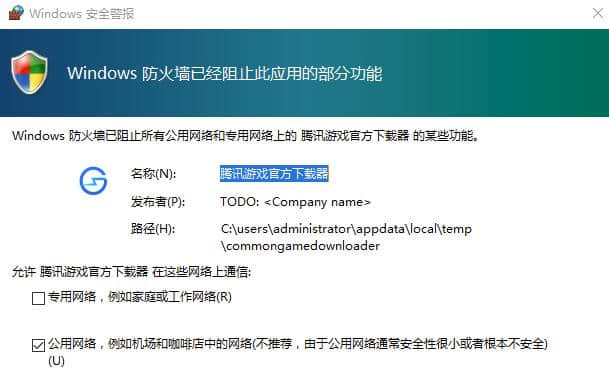 6.接下来,电脑上会出现Windows安全提醒界面,如下图所示,提示是否允许游戏下载器,我们点击允许。