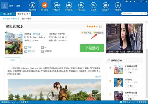 3.搜索后,将进入游戏页面。此时可以点击游戏旁边的“配置检测”按钮。点击后,你可以自动检测配置,看看是否可以在这台机器上玩游戏。