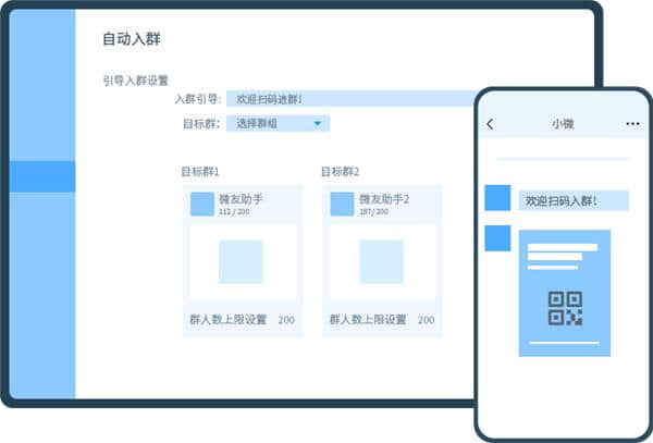 2.你可以设置群发关键词和对应的群,当好友发群发关键词的时候。