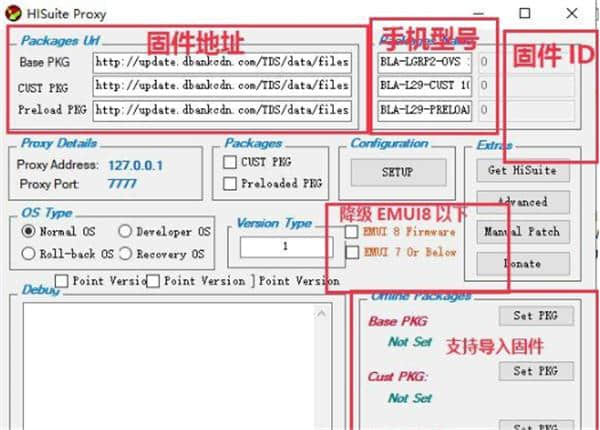 2.软件中可以设置EMUI,华为可以用旧固件配置。