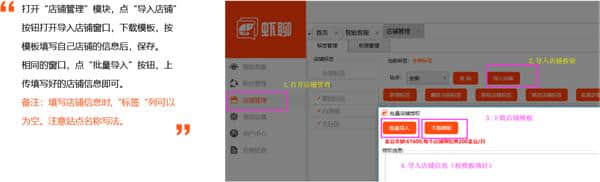 1.打开店铺管理模板,可以导入店铺,下载模块。