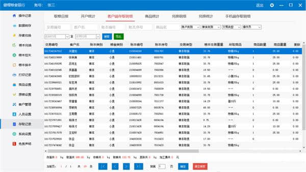 3.存取记录:记录和统计粮食账户的每一次变动。