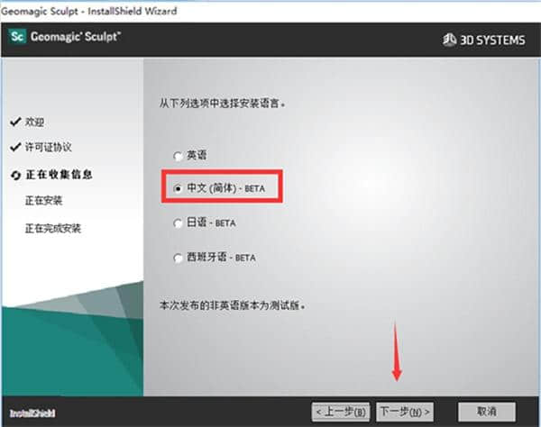 5.选择中文,然后单击下一步。