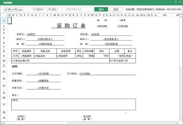 2.可以快速提供更多不同的采购订单,并且可以轻松保存多个模板。