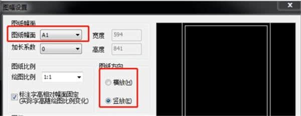 3.在里面,我们一般可以先设置板材的规格。有几个常规选项A4-A0,您也可以自定义工作表。此外,还可以选择纸张的方向。