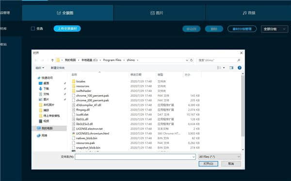 2.素材库的所有文件都可以上传,方便用户管理素材,同时也可以避免素材数据的丢失。