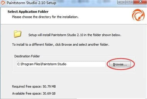 4.设置安装目录。默认为“C:程序文件Paintstorm Studio”。如果要修改浏览,点击“安装”开始安装。