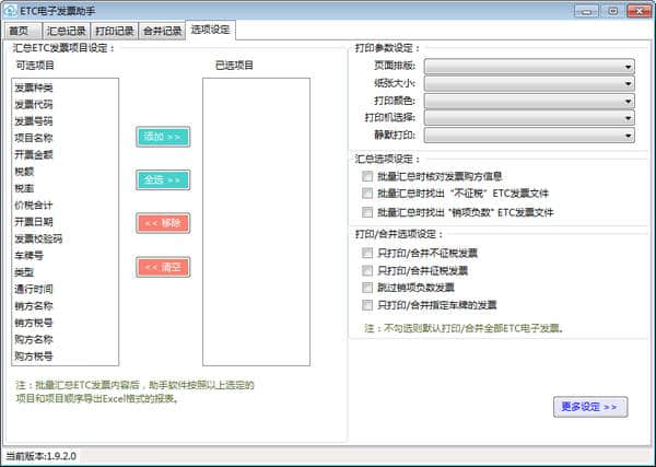 3.版本ETC电子发票助手可以自定义输出发票报表项目,灵活方便。