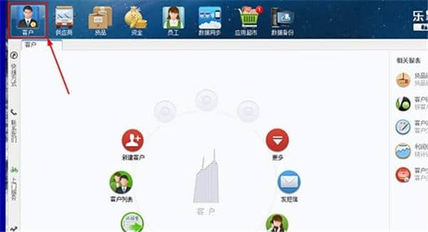 1.首先需要进入乐掌柜管理,只需点击最上面一栏的客户栏,然后点击红框中的收银机;可以使用选项,如下图所示: