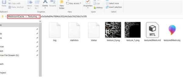 7.默认情况下,文件会自动创建一个名为“MeshroomCache”的文件夹。在存储项目的地方,我们可以找到生成的模型。MeshroomCache/Texturing中的obj和材质,未来可以使用Autodesk FBX View等3D预览软件查看。