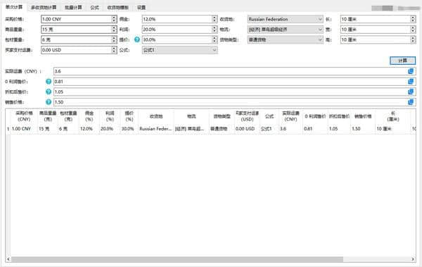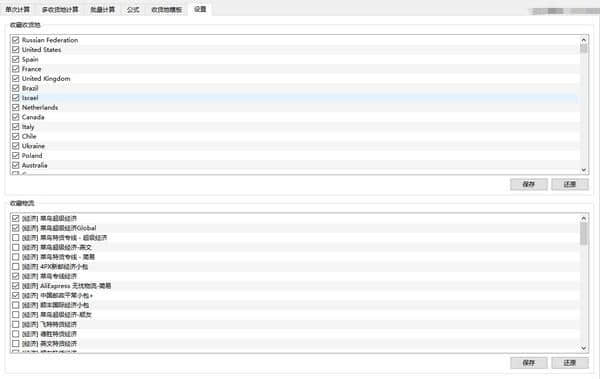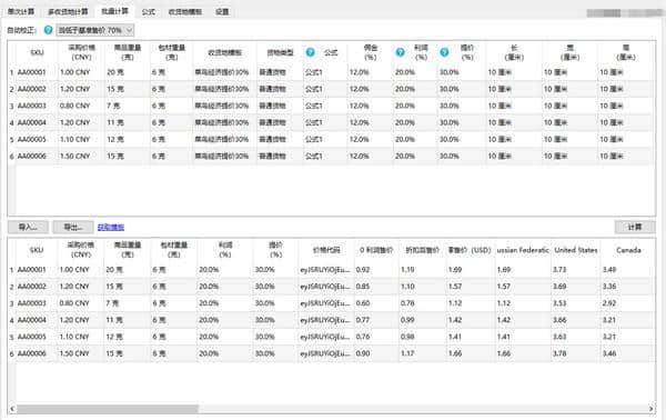 2.可以计算多个分区域国家对应的物流运费和价格。