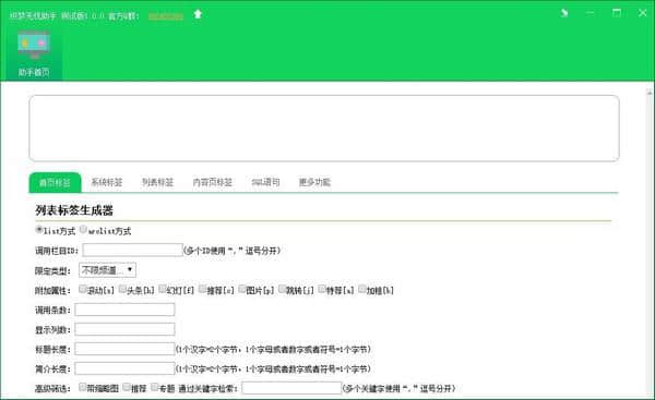 织梦无忧助手免费版免费下载主要用于行业软件各种网页内容都能轻松得去进行标签管理和生成的电脑软件,创佳软件园小编给各位带来了织梦无忧助手下载以及使用介绍,总体来说织梦无忧助手v1.1.2软件通常比较操作简单容易上手,是很多用户必备选择,快来下载吧,