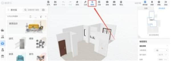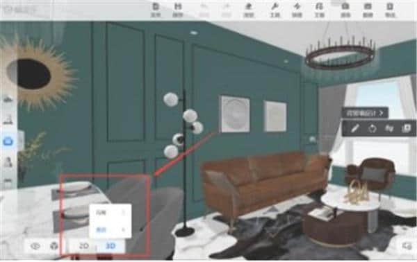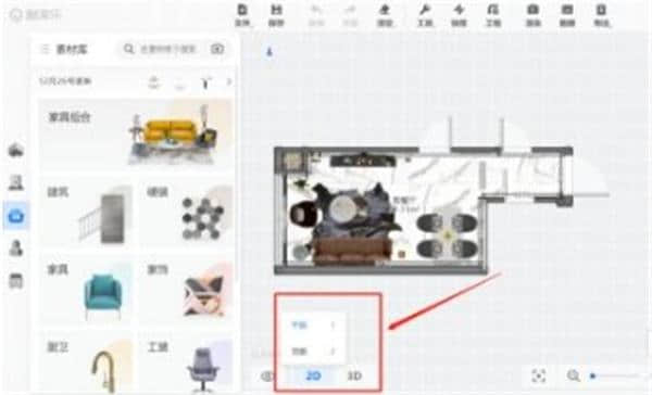 3.平面图绘制完成后,可以继续做装修设计。在装修工具中,可以选择2D平面或顶面、3D鸟瞰或漫游四种视角进行装修。
