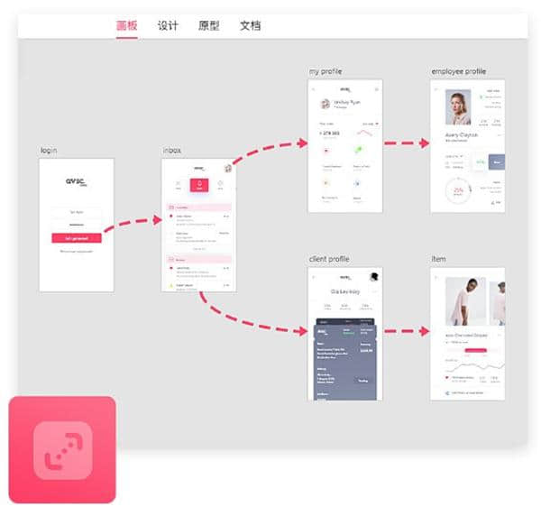 3.原型页面一览无余,画板大小不限,全视图显示所有页面。