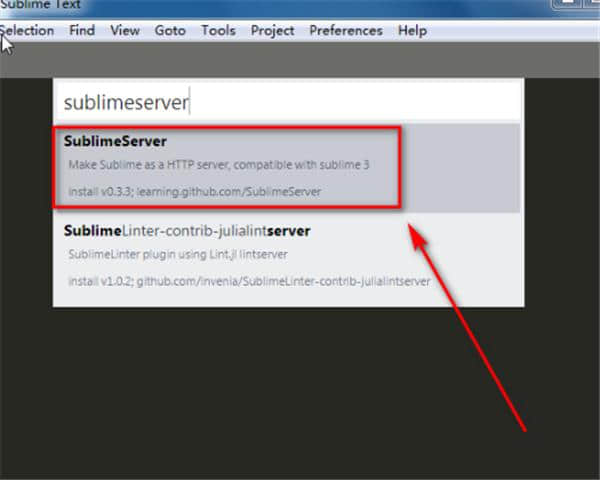 3.只需输入插件名称崇高,点击第一个搜索结果,插件就会自动安装。