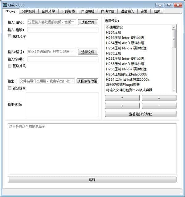 QuickCut软件下载,可以快速合并压缩的开源处理软件,QuickCut(多功能处理工具)可以为你带来很多不同且广泛的软件的压缩合并,多种不同的预置方式可以轻松选择。各种内容的处理功能非常全面,可以针对不同需求快速编辑自己想要的内容。