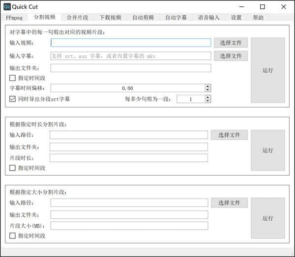 1.三个功能:按字幕分段、按大小分段、按时长分段。