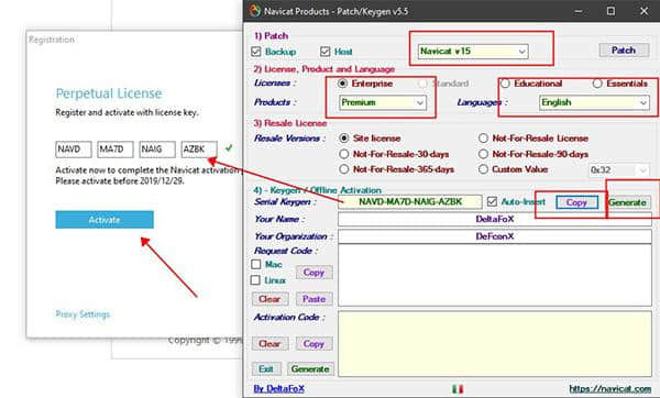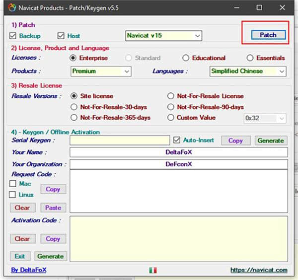 3.将Keygen激活工具放入软件安装目录,选择navicat v15、企业版和Premium,点击补丁按钮;