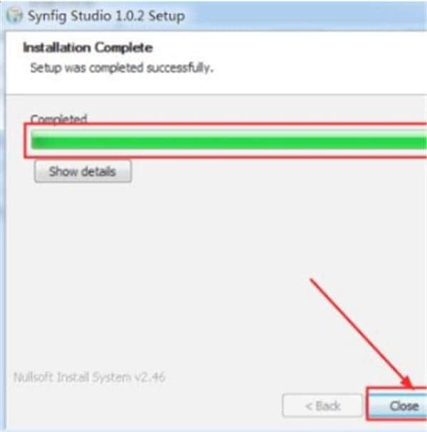 6.等一会儿。安装向导完成程序安装后,将进入最后一个界面。此时单击关闭按钮关闭对话框。
