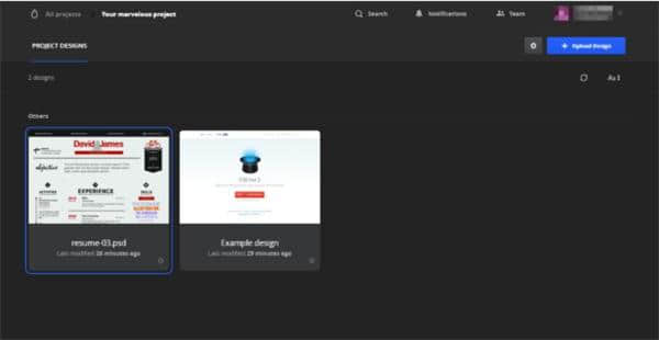 2.进入后,可以选择上传按钮上传我们的PSD文件。这是一份简历。