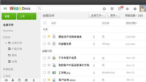 zoho docs软件下载,最专业的多文件文档快速存储和编辑服务工具,zoho docs在线云文档管理工具可以为您带来许多非常方便轻松的在线云文档管理方法,各种文档管理内容都非常方便,各种在线编辑文档都非常实用,而且在线多人协同工作非常方便,让您随时轻松上班。