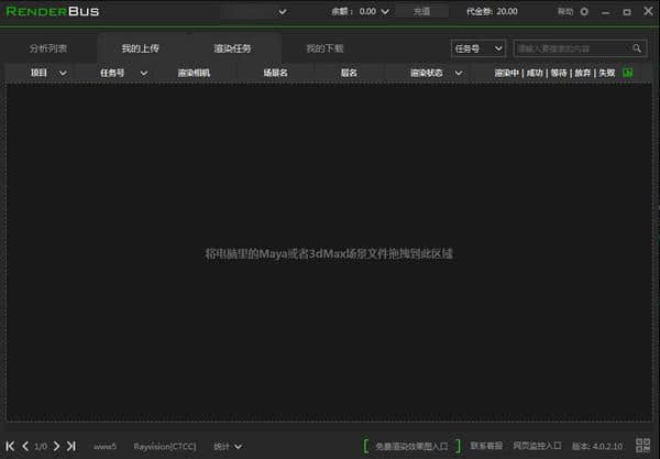 1.通过拖放提交渲染作业,并自动上传所需的资源文件。