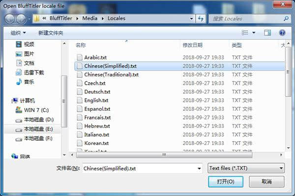 3.选择“中文(简体)”。txt "并点击打开按钮切换到简体中文界面。