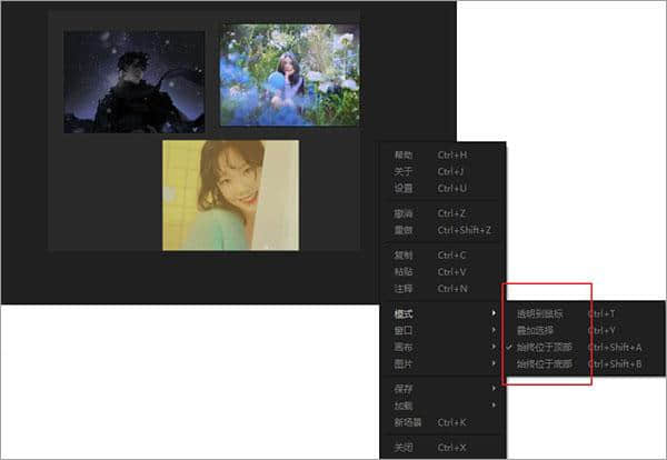 2.通过软件将图片设置为始终位于工作区的顶部。