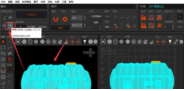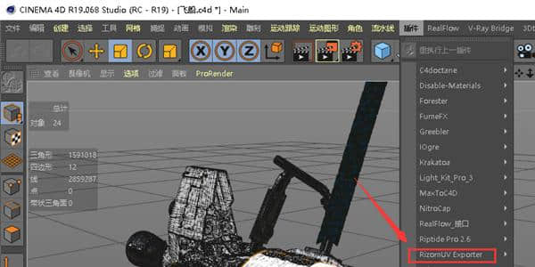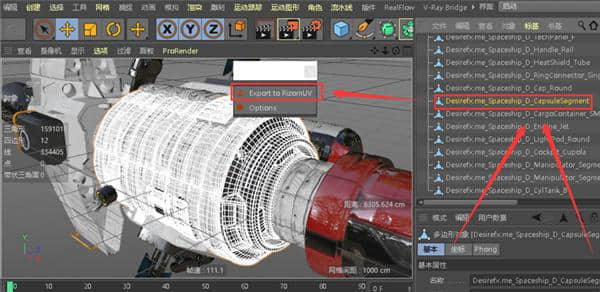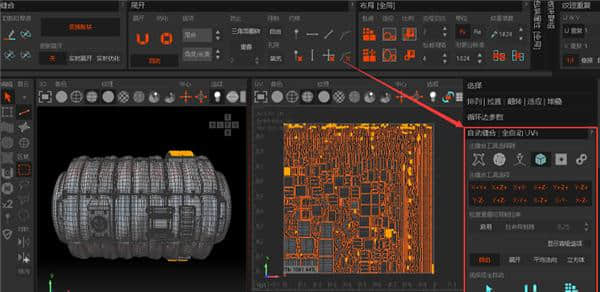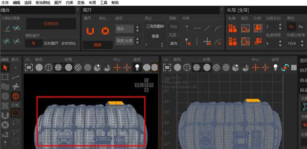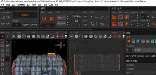 选择对象,点击导出到RizomUV导出,自动打开RizomUV加载模型。