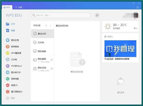 成功打开WPS云文档功能界面,我们可以在这里使用云文档功能同步在线文档。