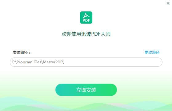 我们进入了速读PDF的安装向导。安装向导的主界面非常简洁。安装向导提供默认安装路径。只需点击“立即安装”,就可以将快速阅读的PDF安装到您的计算机中。需要修改安装路径的朋友,点击“更改路径”打开文件夹选择窗口,选择安装路径文件夹后,点击“确定”完成安装路径的修改;