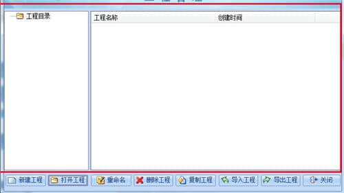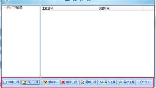 2.下面的红框包括新建项目、打开项目、重命名、删除项目、新建项目、导入项目等。