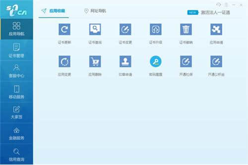 “应用导航”部分默认隐藏,只有用户在电脑中插入“法人一通”Ukey时才会显示,如下图所示: