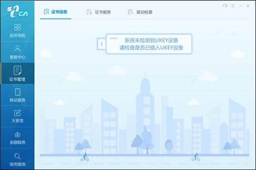 默认情况下,单击“证书管理”图标显示“证书”选项卡。当Ukey没有插入用户的计算机时,显示如下: