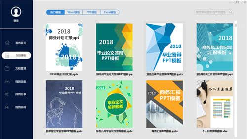 7.左边有一栏叫在线模板。相信大家在工作中经常需要ppt演示文件,所以在这个选项中我们可以得到很多文件!此外,可以通过顶部的不同文件模式选择不同的模板。