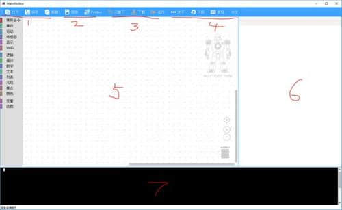 3.设备操作区,断开,设备连接或断开按钮,将当前编辑的代码下载到设备,并运行下载的程序。