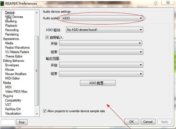 2.设置后会出现一个弹出框。请找到ASIO配置项目并选择延迟。选择后,将出现一个下拉框。请选择8.00毫秒(384个样本)或10.67毫秒(512个样本)选项。