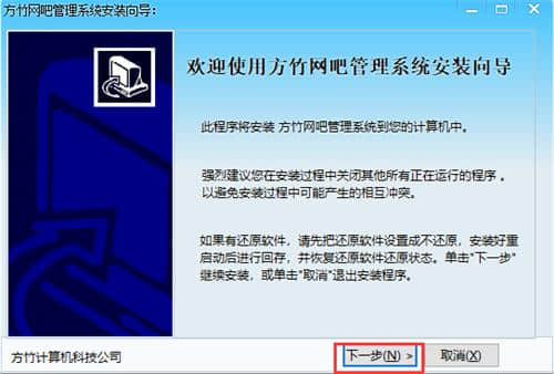 2.进入朱芳网吧计费安装向导界面,点击下一步。