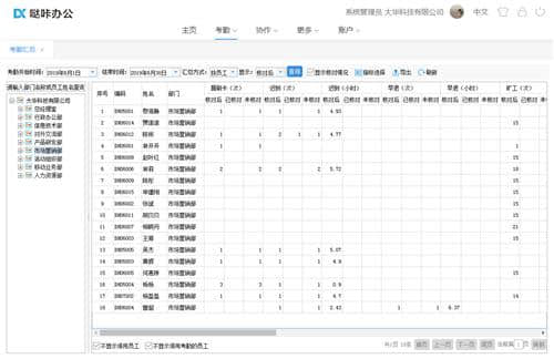 6.考勤汇总:专为HR设计,可随时查询指定时间段的考勤结果,按部门或员工查询考勤汇总,包括检查前后正常、漏刷卡、迟到早退的次数和时长。只需点击一下即可将摘要导出到Excel。