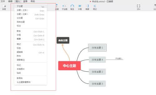 4.子主题按钮,用于在当前选中的分支下建立分支;