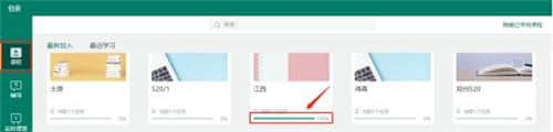 检查完成率。课程包中的一个代表学习任务,任务的完成率显示在课程的第一页。比如一个课程包有4个任务,完成了2个任务,目前完成率是50%。