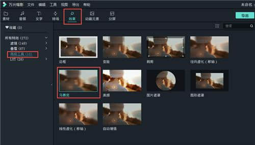 2.将选中的特效拖放到对应的上方时间轴上,双击时间轴上的特效,打开特效编辑窗口。在预览窗口中,将出现一个镶嵌框。您可以拖动镶嵌框来更改编码区域,或者调整框的大小来更改编码区域。并通过工具调整模糊和透明度参数。