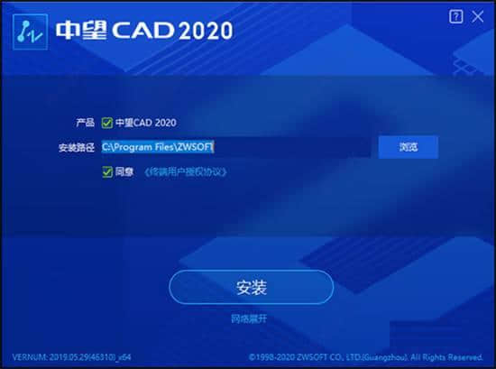 中望CAD2020安装步骤: