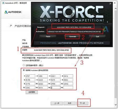 8.之后会在线生成激活码,将申请号发送到注册请求,然后点击生成获取激活码。最后,激活码将被发送到软件注册框,并单击下一步。