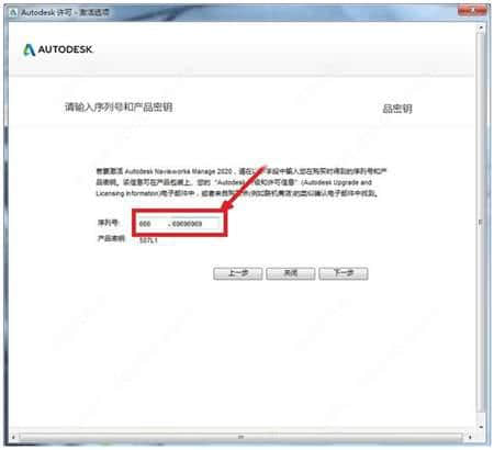 5.输入autodesk navisworks manage 2020序列号、[666-69696969]和密钥[507L1],然后单击下一步。