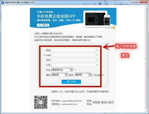 3.进入中望CAD机械版2020的注册界面,用户可以免费注册,填写相关信息,打开软件,进入界面。