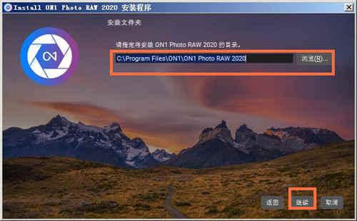 2.选择软件的安装路径。默认安装地址是C:Program FilesON1ON1 Photo RAW 2020。想要更改地址的用户可以在右侧浏览,然后单击继续。